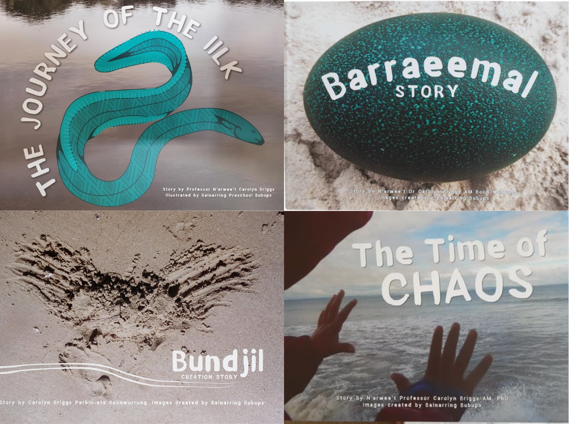 Bring the stories of the Boonwurrung to life with this stunning four-book collection written by N’arwee’t Dr Carolyn Briggs and illustrated by the children of Balnarring Preschool. Each story invites readers to walk with Country — to learn, listen, and connect through the language, knowledge, and spirit of the Boonwurrung people.